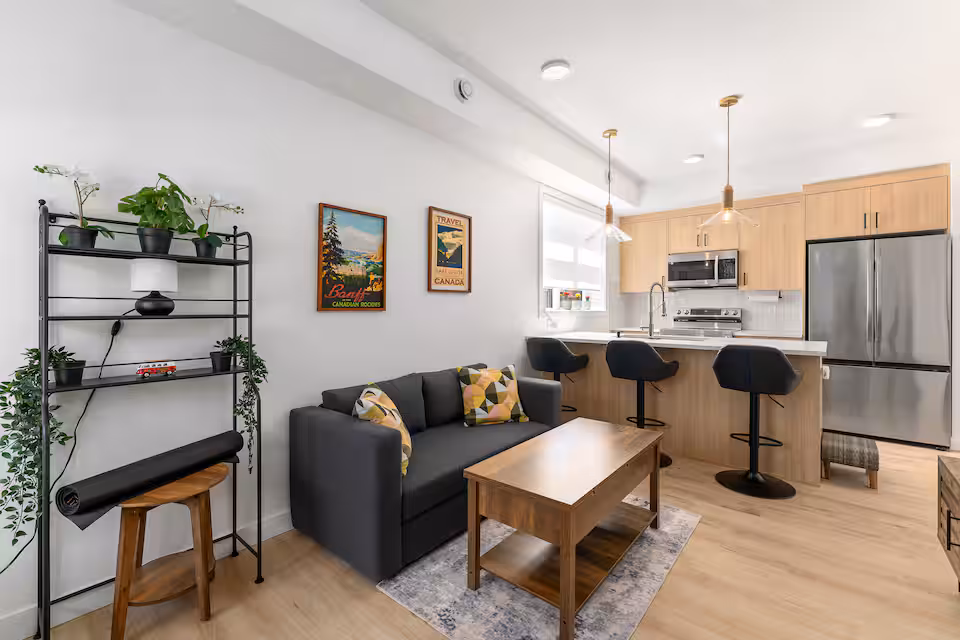 New in 2025, this executive condo offers a relaxed, comfortable stay just minutes from the vibrant Marda Loop. Enjoy a modern private suite with a gourmet kitchen, quartz counters, and balcony, plus thoughtful touches like a game stick with 20,000 games and Rocky Mountain Soap amenities. Walk to Mount Royal University and local brew pubs, with easy access to downtown, Stampede, and Banff—no cleaning fees, no checkout chores. Add our listing to your Wishlist by clicking the in the upper-right corner.